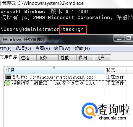 在命令页面最后输入“taskmgr”按下回车键,也可以启动【任务管理器】;