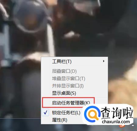 在【任务栏】空白处点击鼠标右键,选项中会有【启动任务管理器】;