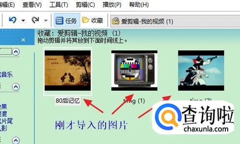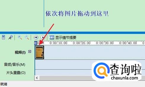 此时软件的正中间就看到了这几张图片,然后我们依次将这几张图片按住鼠标左键拖动到下方的“视频”处,这时一段简单的视频就制作好了,右侧会有预览...