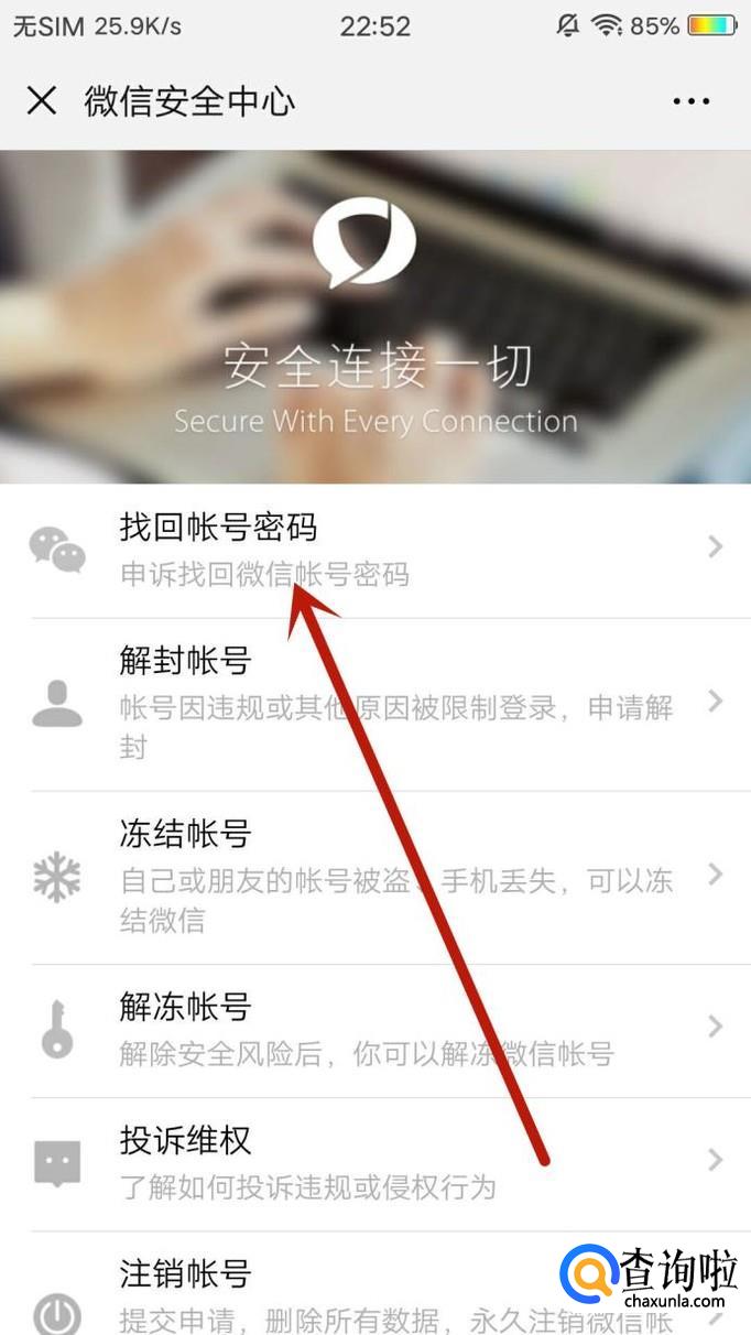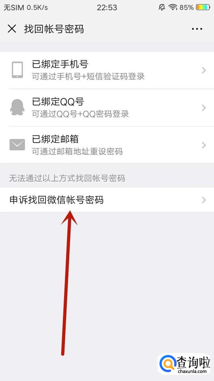 进入之后,点击“申诉找回微信账号密码”,如图所示。