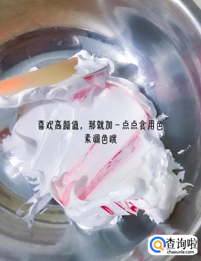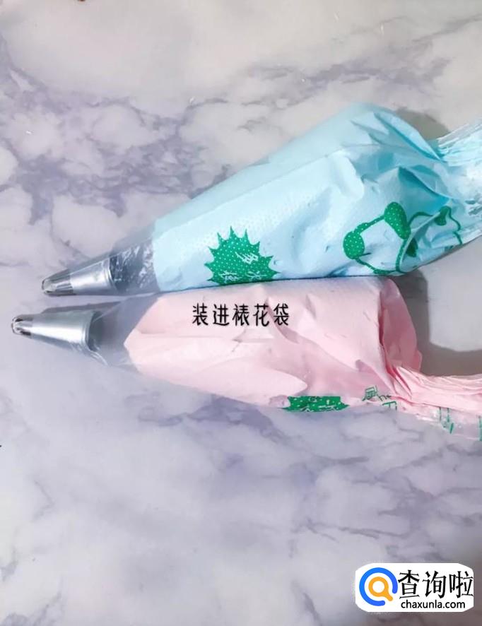 - 06                                                                                                            然后把蛋清加入到裱花袋,如下图所示。