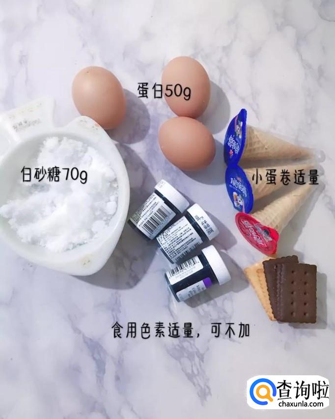 食材:白砂糖70克,食用色素适量,蛋卷适量,鸡蛋三个。