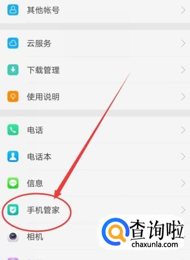进入设置页面,找到“手机管家”,点击并进入,如图所示。