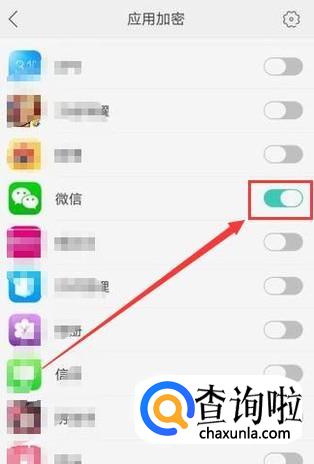 进入应用加密界面之后,向左拖动右侧的小滑块即可关闭微信加密,如图所示。
