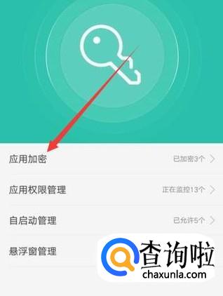进入到“权限隐私”之后,点击“应用加密”,进入下一页面,如图所示。
