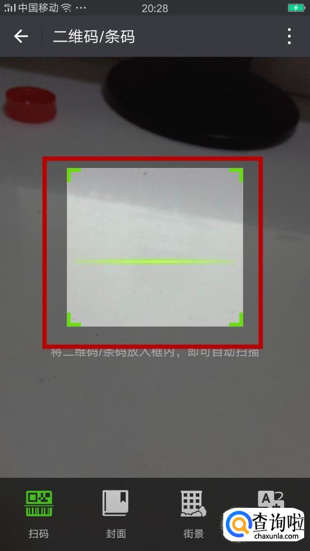 之后弹出扫描二维码的界面,我们中间方块对准二维码进行扫描,如图所示。