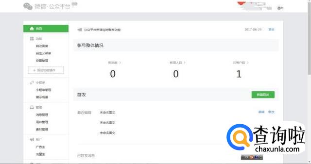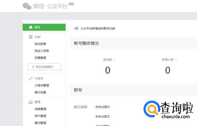 手机验证成功后电脑即可自动进入微信公众平台,即可登录成功,如图所示。