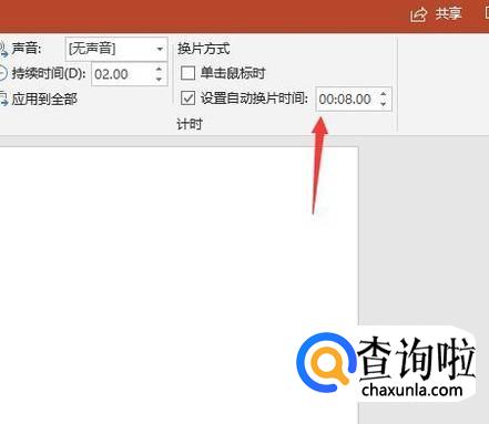 最后设置切换时间就可以了,设置好后就可以点击播放,这样幻灯片就可以自动播放了。