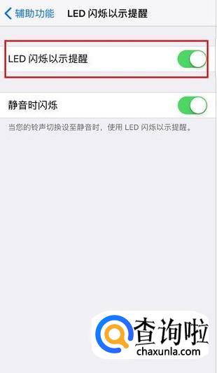 通过对开关的控制,可以实现对来电闪光灯的开启或关闭,也可以选择设置是否在“静音时闪烁”。