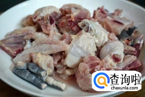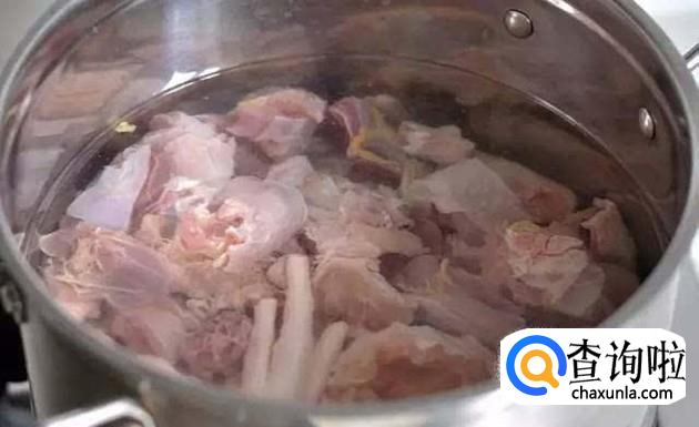 先把鸡肉洗干净后切成小块状,往锅里加入适量的水,然后把鸡肉放进去去除血水,就可以把鸡肉捞出来。