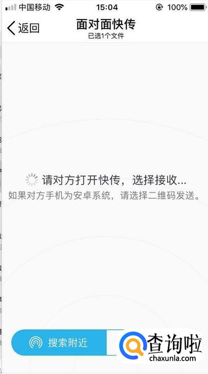 最后我们只需要让对方打开快传接收文件即可,如果对方手机是安卓,推荐使用二维码哦。