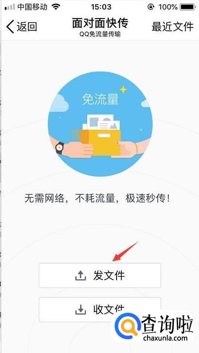 接着在面对面快传里面选择发送文件或者是收文件,下面小编以发送文件为例子。