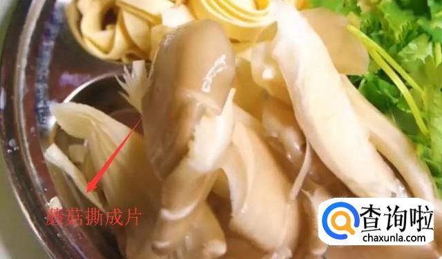 接着我们把蘑菇撕一下,撕成下面这种片状就行了