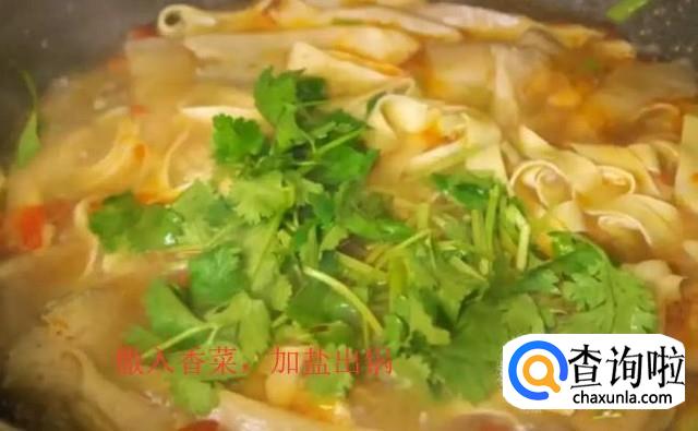 最后等锅再次开了以后我们就可以撒上香菜叶出锅了,一份香喷喷的半汤菜就做好了