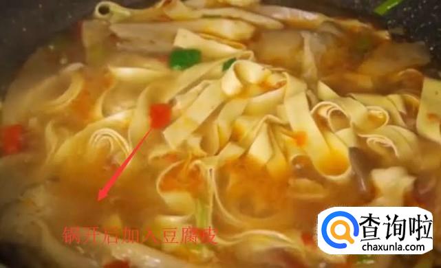 等锅开了以后我们放入豆腐皮,并加入适量盐,搅拌均匀即可,如下图所示