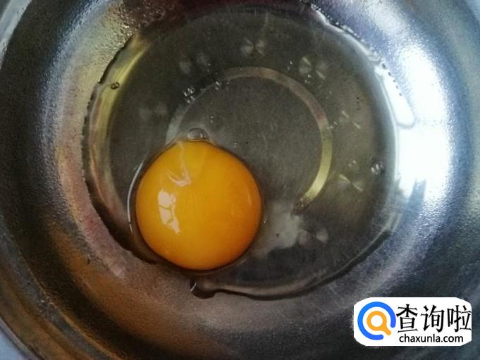取新鲜的鸡蛋一个,用清水把鸡蛋洗净,磕入碗中,用筷子把蛋液打散待用。取适量面粉,加入适量清水,用筷子搅拌成面糊待用。