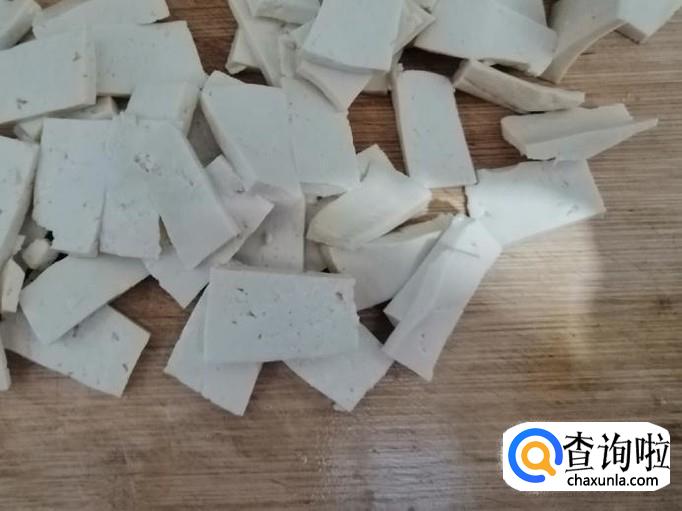 取适量新鲜的豆腐,把豆腐切成豆腐块待用,豆腐尽量切的薄一些,比较容易入味,豆腐切好待用。