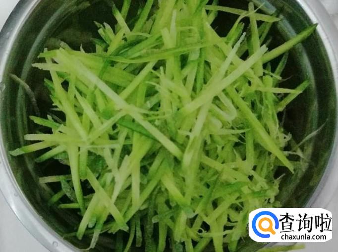 取新鲜的青萝卜一个,用清水把萝卜洗净,然后放在菜板上切成细丝,刀工不好的话,可以用擦丝的工具,把萝卜擦丝待用。