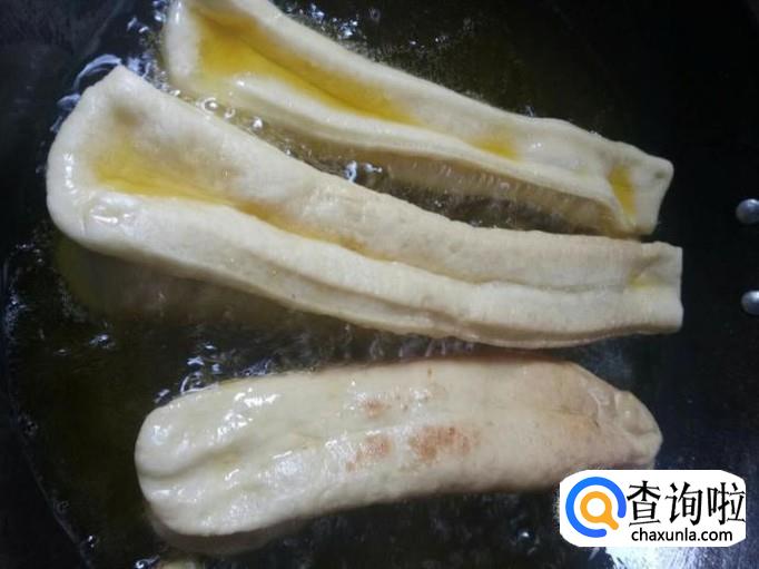 油条飘起来,一面金黄,翻至另一面,炸到两面金黄就可以出锅了。