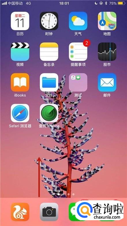 然后回到主界面 ,屏幕往上滑动,如下图所示。