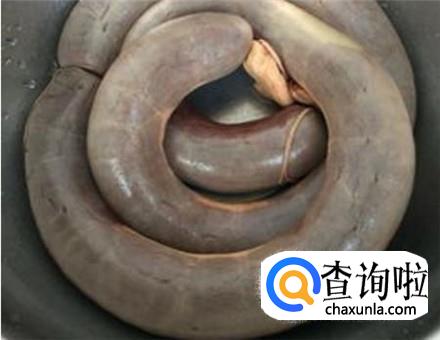 今天我还在肉店里看见老板摆着的一盆血肠呢,这是东北菜,猪血加上猪油和调料灌进猪肠子里面蒸熟,用来炖酸菜或者做血肠白肉。