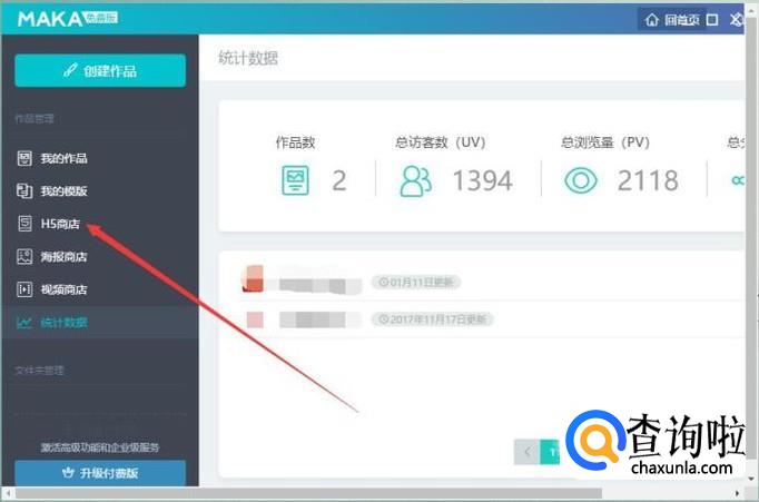 下载应用,登陆应用,在左侧找到H5商店: