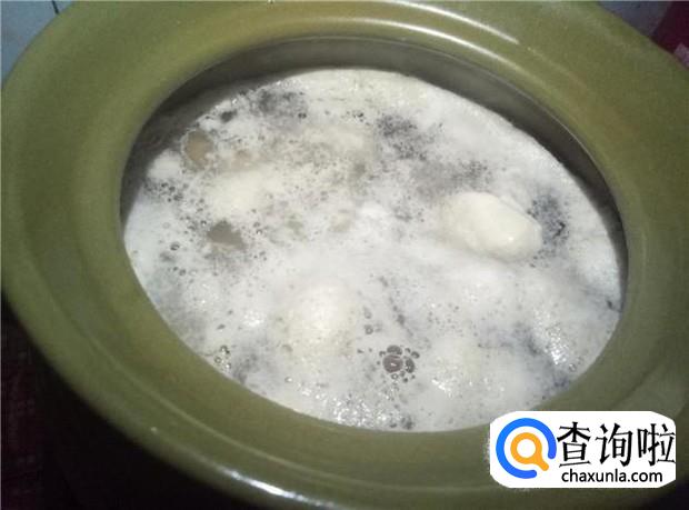大火煮开后,把浮起来的泡泡给撇干净。然后转小火炖。