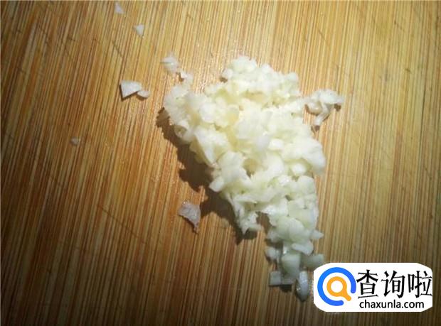 下面来弄一下沾排骨吃的酱料:蒜头两瓣,剁碎。