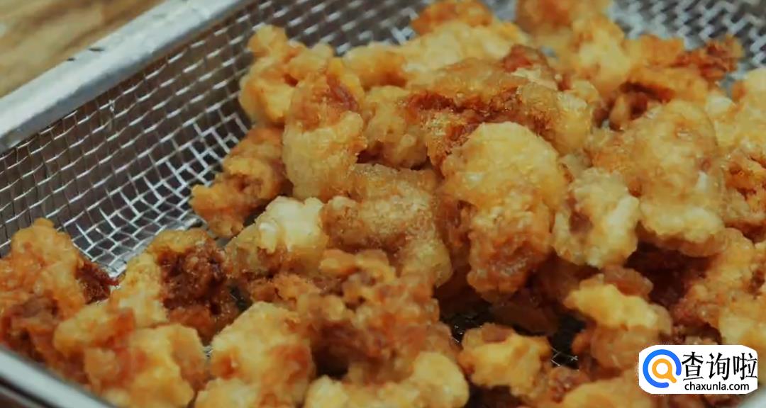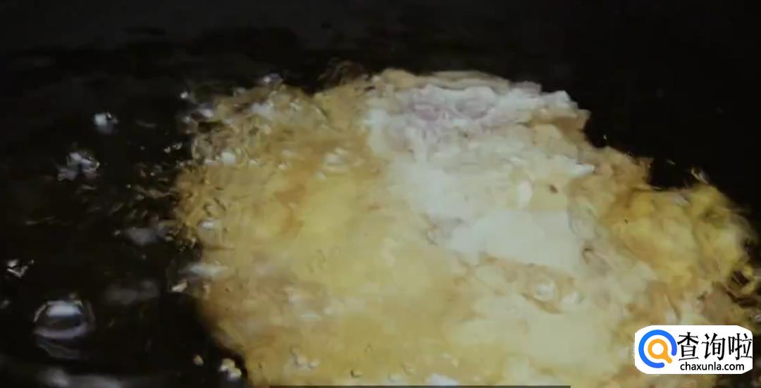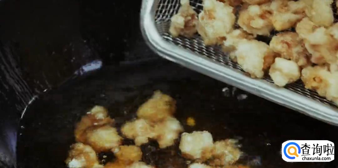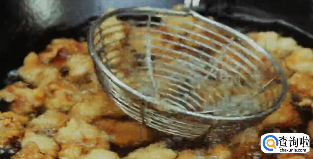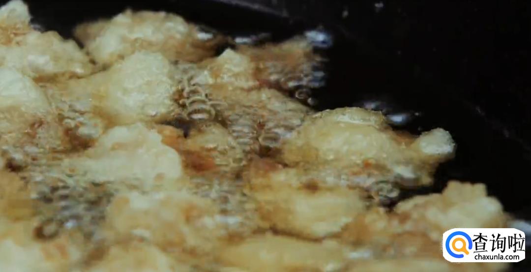 放凉的里脊肉再次下油锅,再用中火炸至表面焦酥即可捞出。