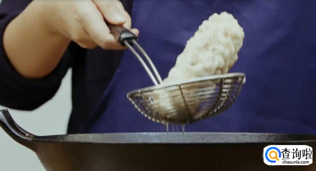 再次下热油锅,小火炸10分钟后,大火再炸1分钟,然后炸至表面金黄后捞出。