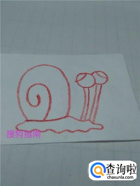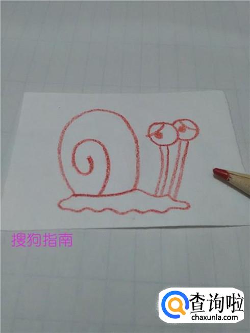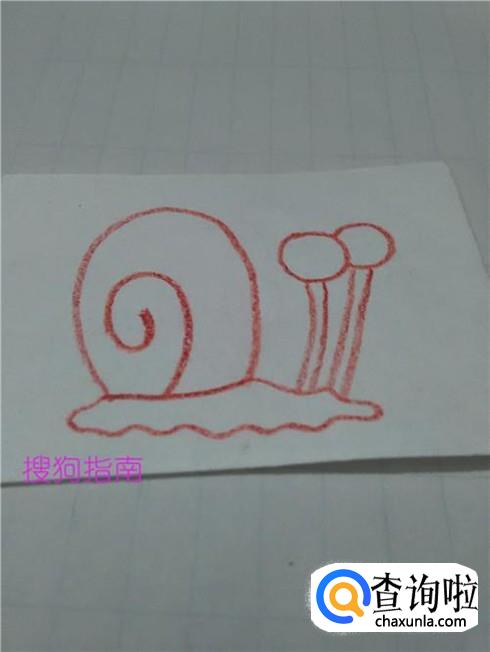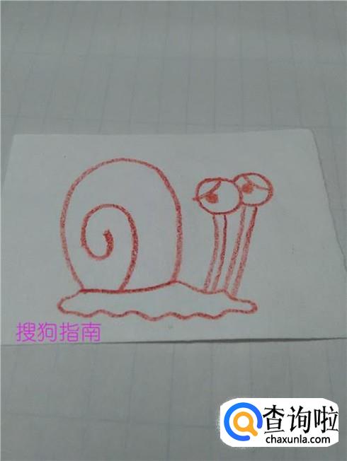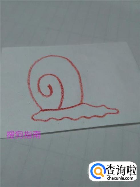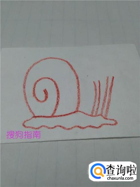 在蜗牛壳的下面画一圈曲线,表示蜗牛柔软的身体。
