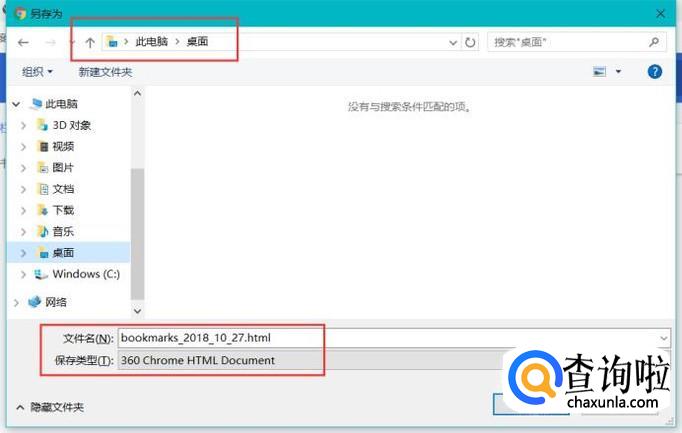 在弹出对话框中设置好导出的书签准备保存的路径、文件名和文件类型,然后点击保存按钮,就完成谷歌浏览器书签保存的操作了。
