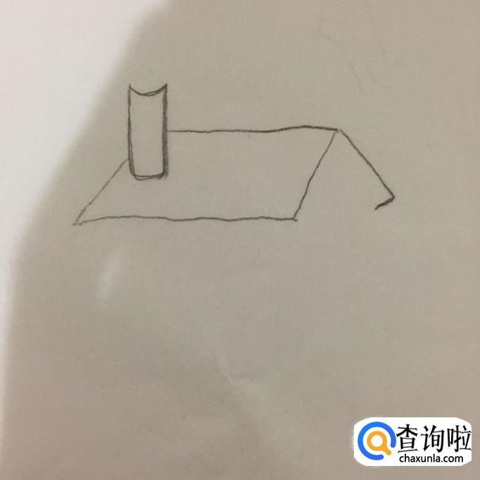 首先用铅笔在a4纸上画出烟囱,如下图所示。画这部分的时候不要画得太大,因为它的太小,直接决定了画出来的房子的大小。