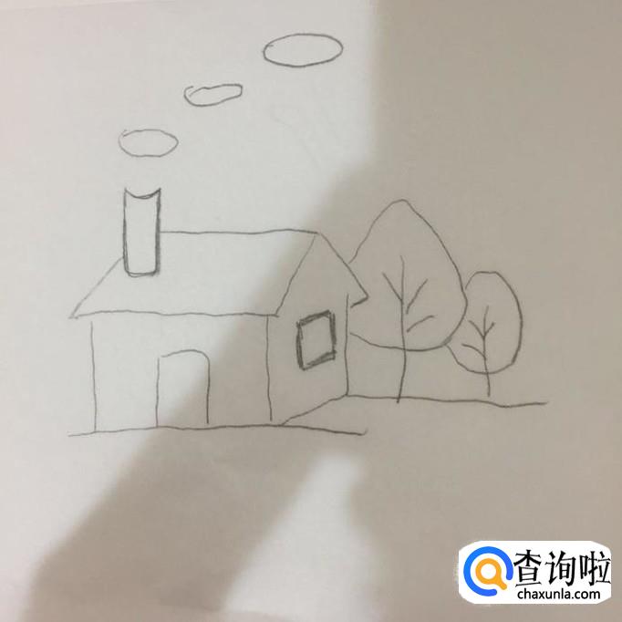 最后画出天上飘着的几朵炊烟就可以了。你学会了吗?赶快动手试一试吧。