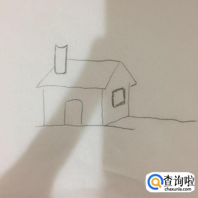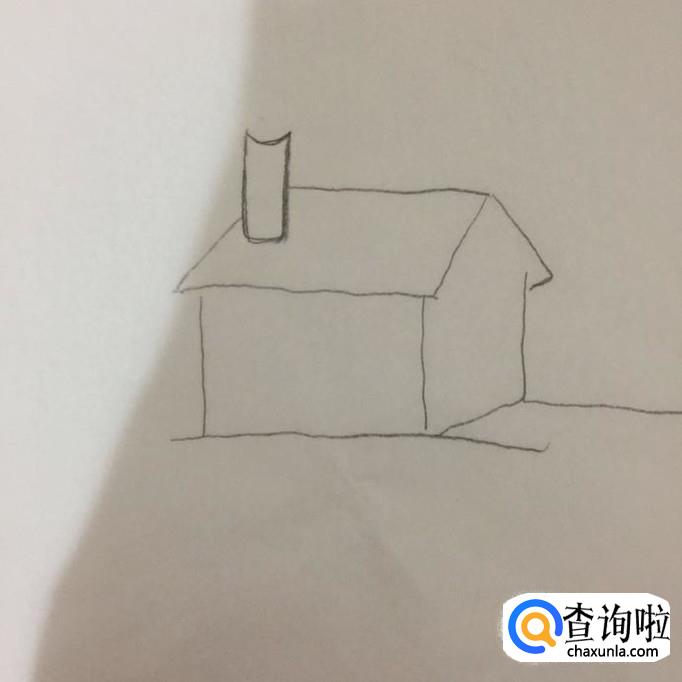然后画出房子的屋顶,如下图所示。画这部分的时候可以把正面画成一个梯形的形状。