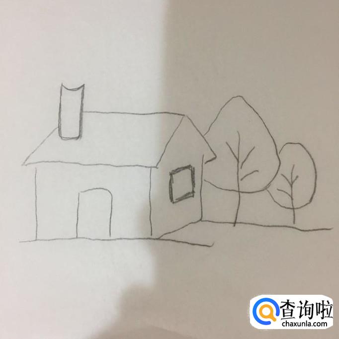 接着画出路边的两棵小树,如下图所示。画树的时候,应该画的一大一小会比较合适。