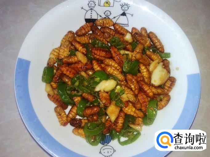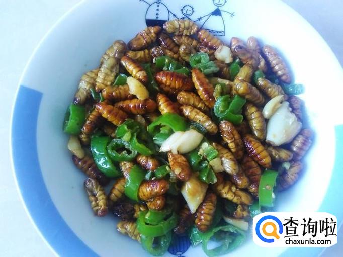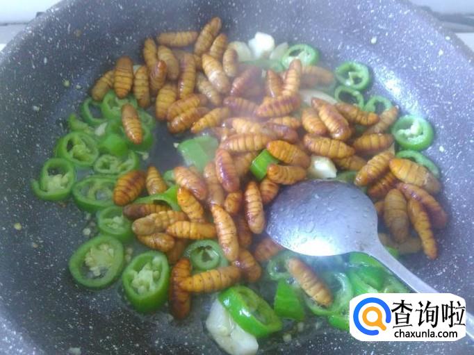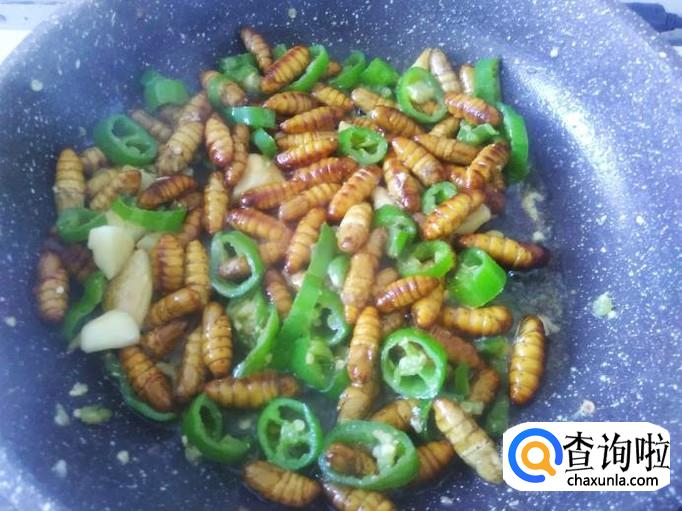 青椒爆蚕蛹的做法