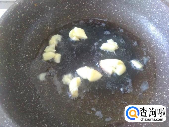 开火下油,放蒜米进去爆出味来。