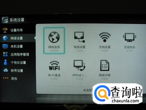 首先在电视的设置中找到网络,打开电视的WiFi。