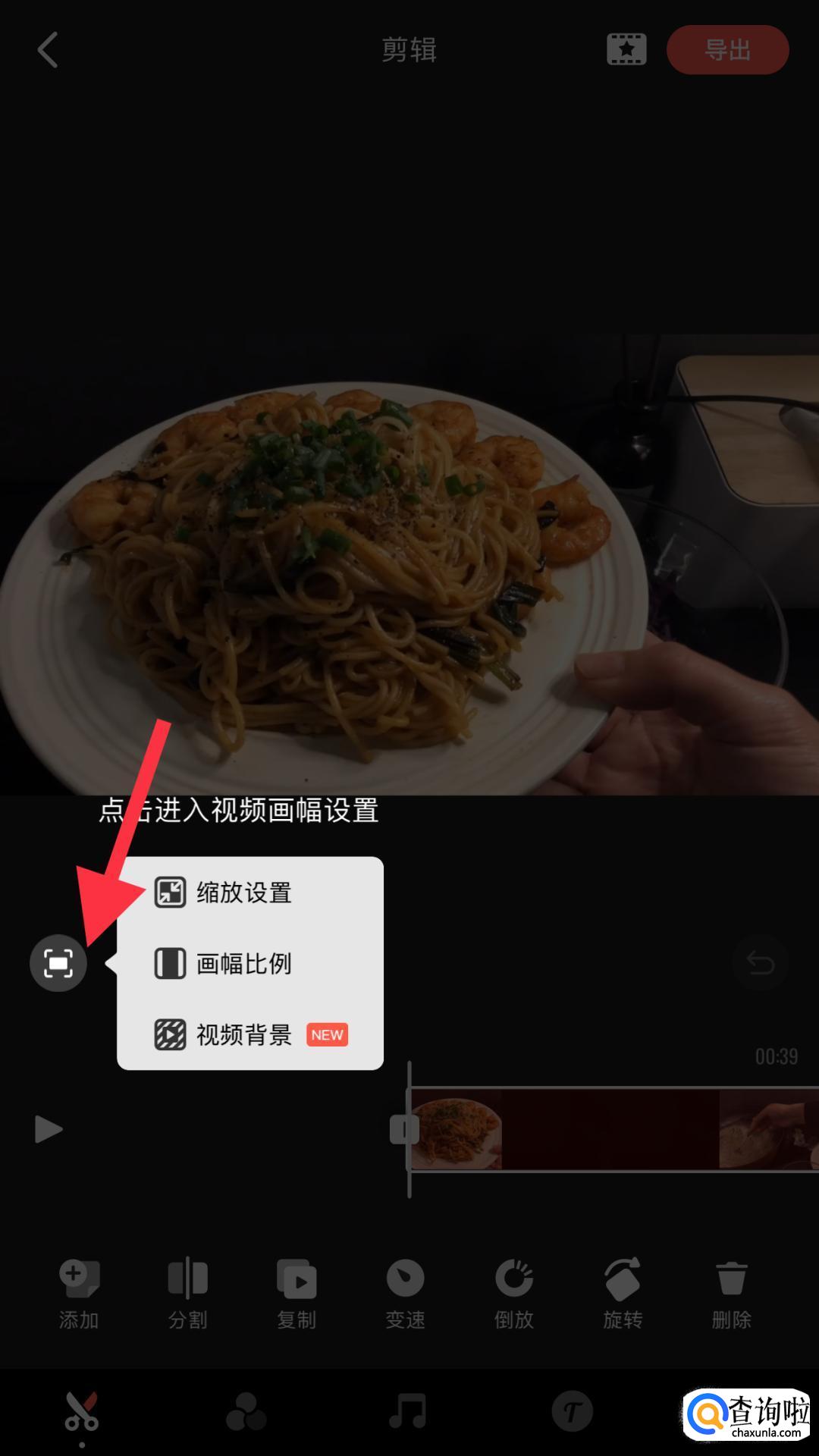 然后点击视频下方的第一个图标,可以对视频的比例和视频的背景进行设置。