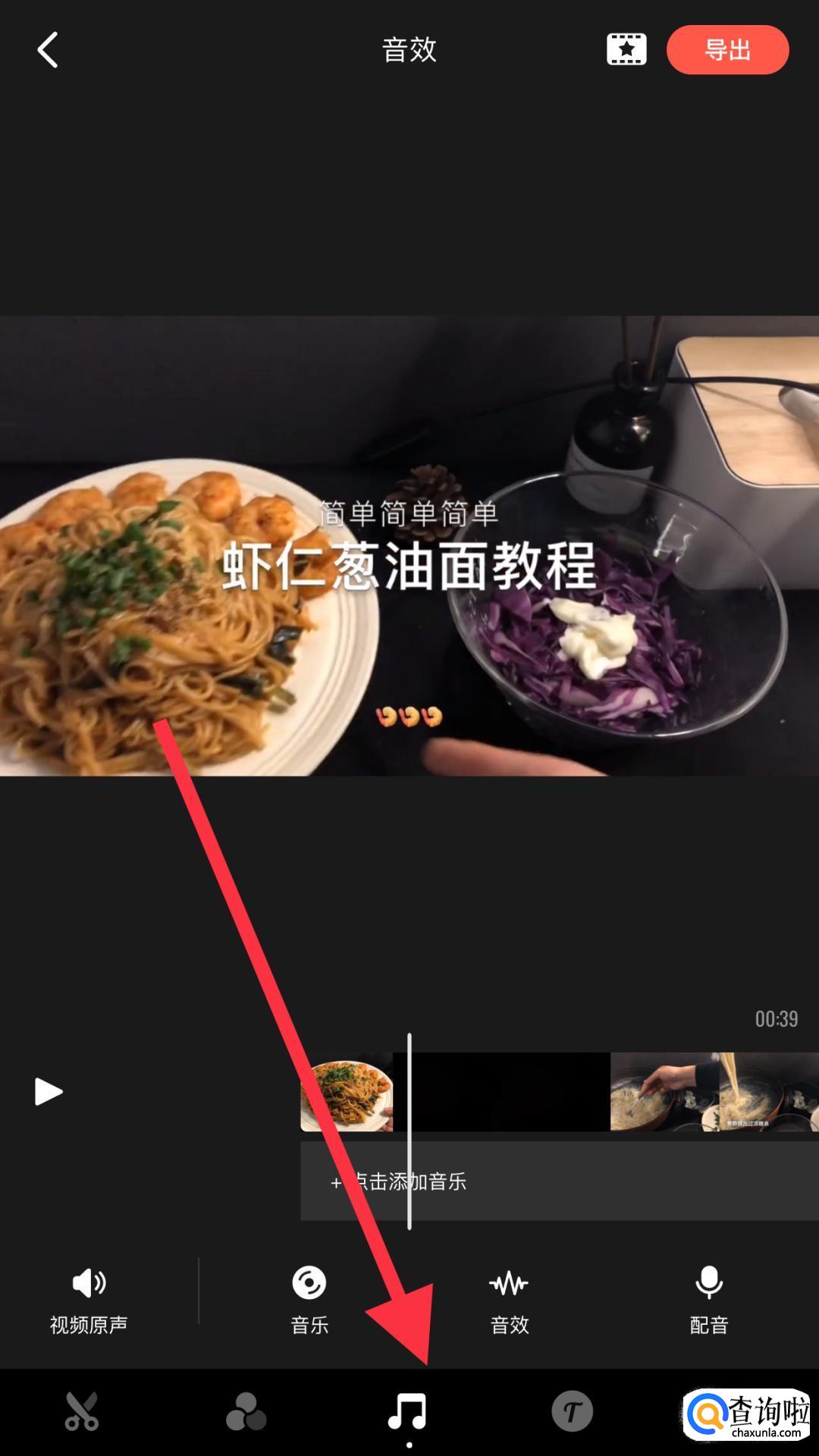 点击音乐图标,可以给视频添加上自己想要的背景音乐。