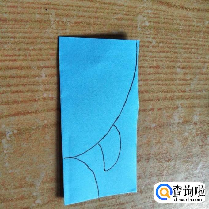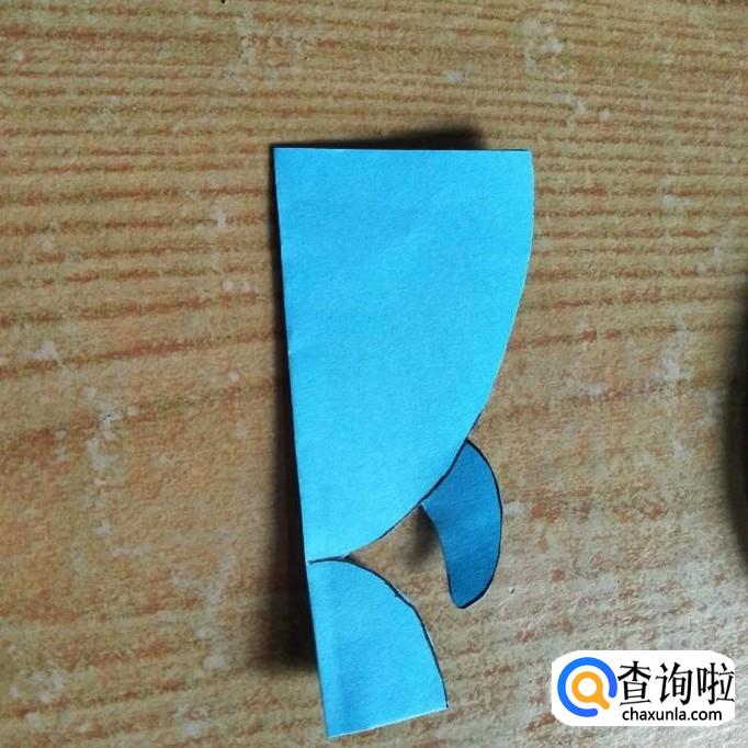 将剪好的鱼形状打开,在鱼头上方对折,咋成如下图所示的样子。