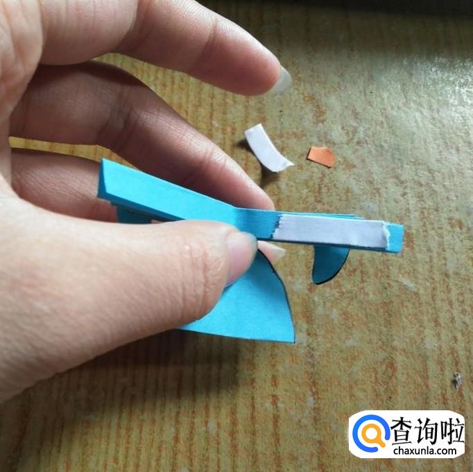 用双面胶把鱼的两个扇形粘起来,形成鱼的身体。粘好以后的鱼,如下图二所示。