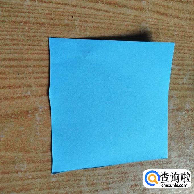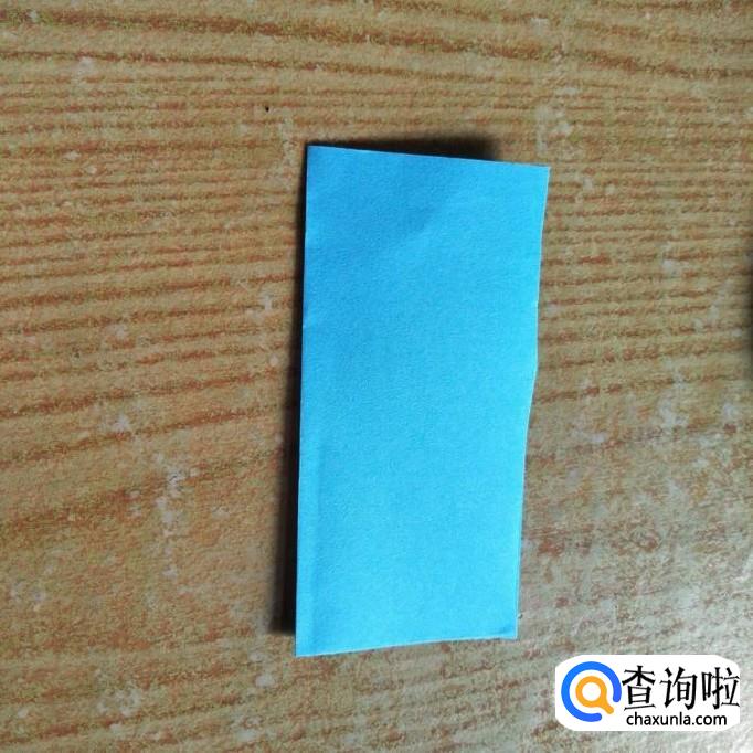 首先找一张蓝色的正方形折纸,将纸对折一次,形成如下图所示的长方形。
