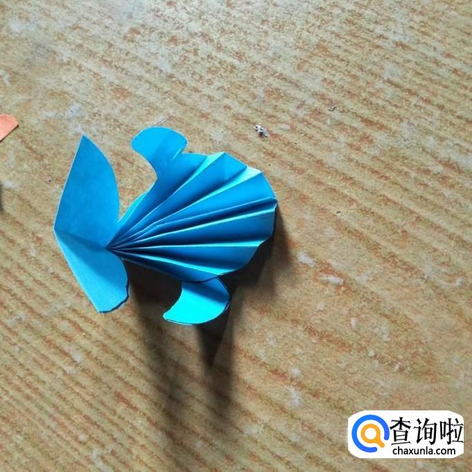 把鱼鳍向下折,鱼尾也向下折,折好后的鱼,如下图所示。
