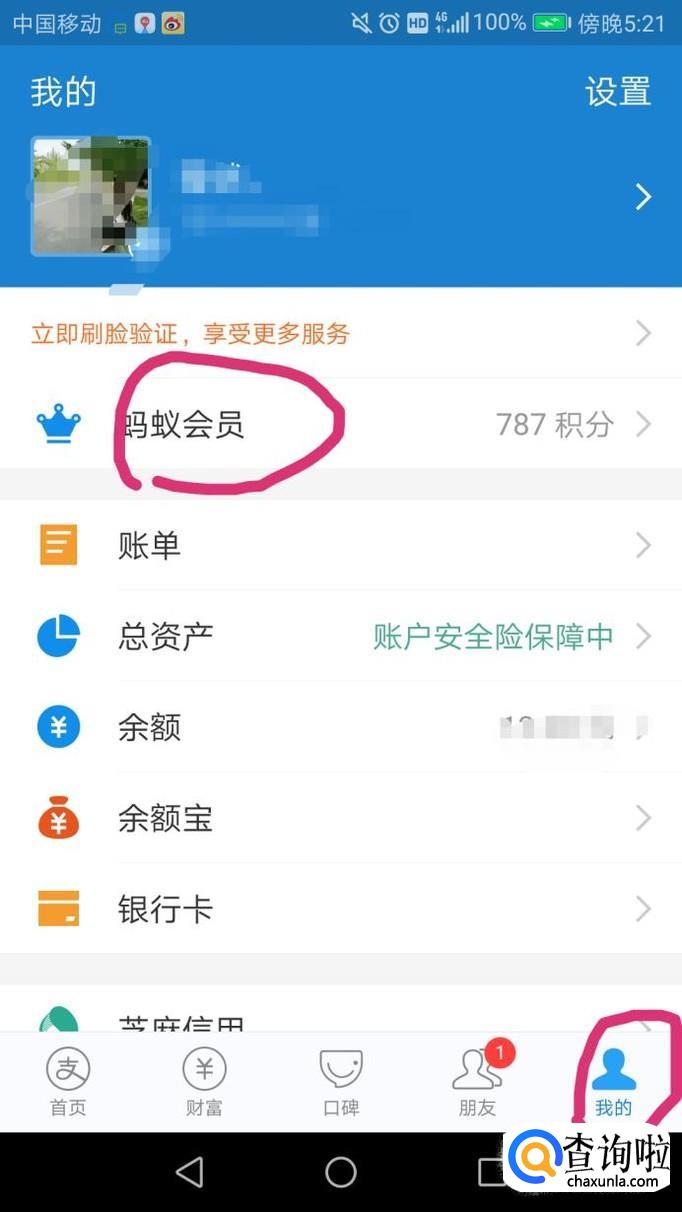 打开手机支付宝,在“我的”界面下点击蚂蚁会员。