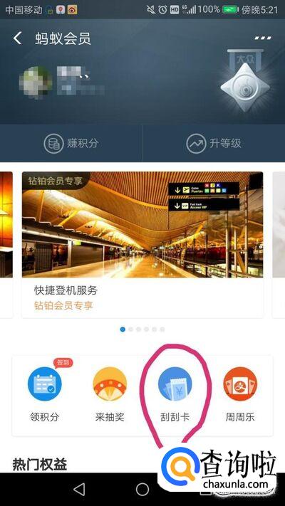 在蚂蚁会员界面下点击刮刮卡,如图。
