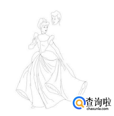 再在公主的右侧我们再画出王子的头部,然后再画出王子的眼睛鼻子和嘴巴,如图所示: