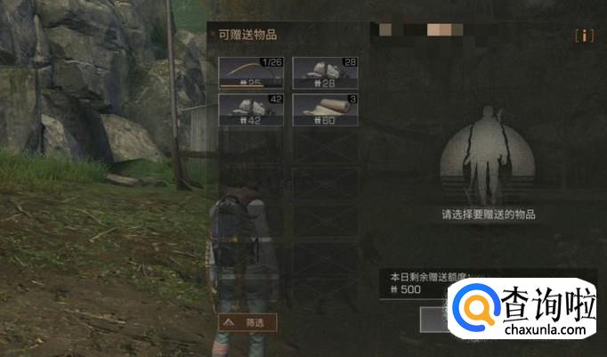 选择要送给好友的东西,只能在背包里面选择,选好之后,点击确认赠送就赠送成功了。
