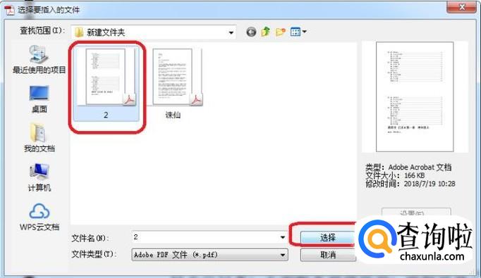 选择要插入的文档,点击“选择”。